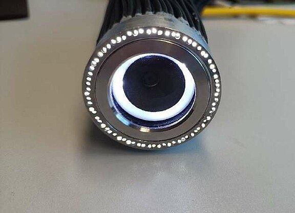 The ATEX-compliant continuous light source delivers 1000 lumens of stable white light and handles base illumination inside the drum. Continuous (non-pulsed) output means flicker-free images at high frame rates – ideal for live streams, video-based evaluation and drums moving on roller conveyors.